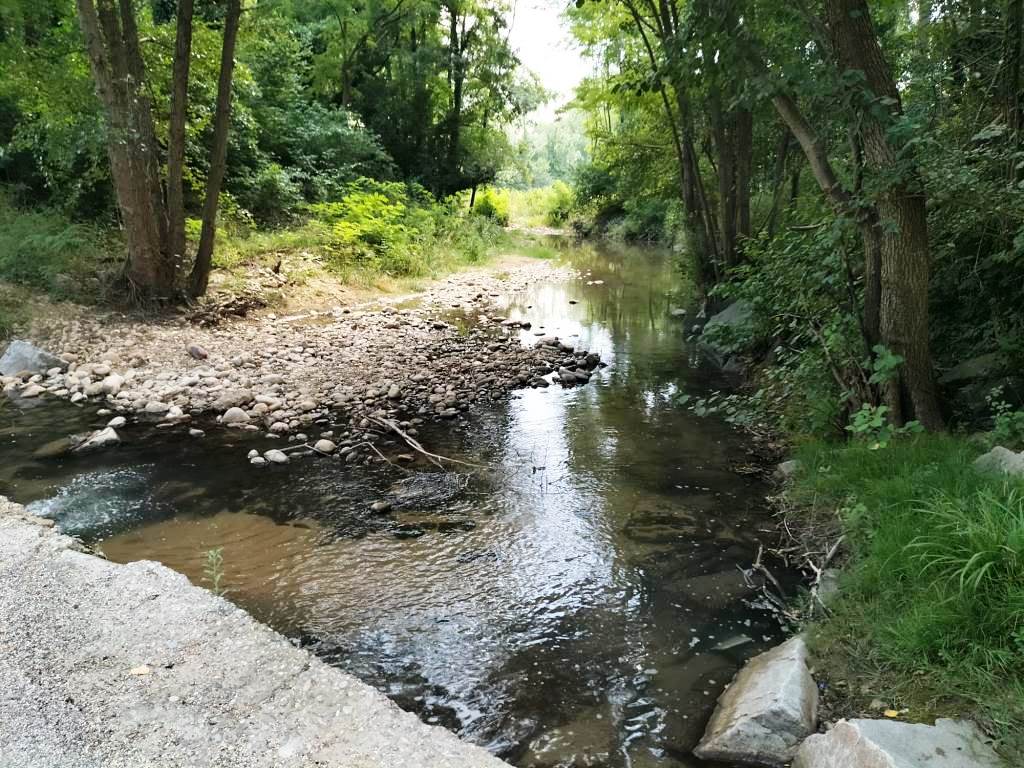 J'étais bénévole ici : traversée d'une rivière sur route (après la traversée sur palettes). Et tous les coureurs ont entendu Johnny chanter "Allumer le feu" ! (Via mon smartphone et mon enceinte bluetooth JBL.)