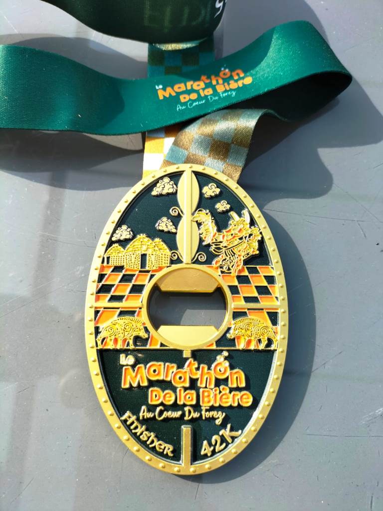 _Une paire de chaussette et TS sympa et superbe médaille avec décapsuleur au milieu ! ! ! Avec une bière... of course ! Et bière pression offerte à l'arrivée ! Bravosss les organisateurs. |