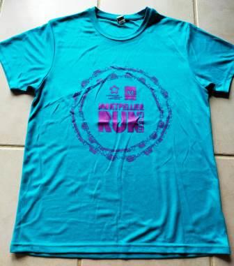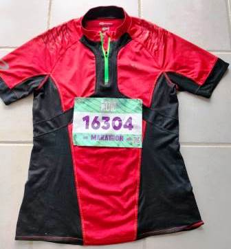 Le maillot qui a couru mais caché par un coupe-vent blanc pour me protéger (en partie) de la pluie. |