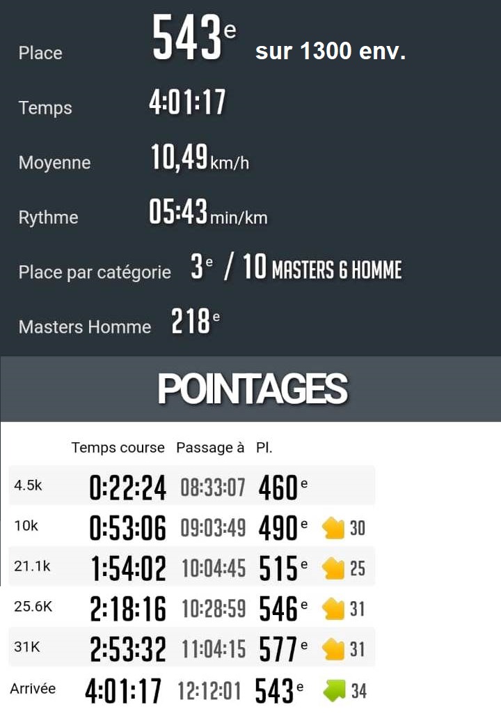J'ai quand même gagné 34 places dans les 11 derniers km. |