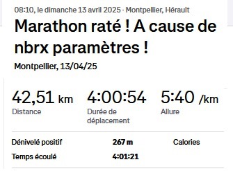 41,880 km annoncé ! A la fin j'ai 42,510 km ! C'est vraiment pas sérieux ! Même si chacune de nos montres affiche toujours un peu plus, comment peut-on annoncer un marathon de 41,880 km ??? 236m en D+, j'aurai 267 à la fin sur ma Garmin Forunneur 255. Mais... site internet vraiment très bien, Site départ et arrivée excellent, dont l'arc de Triomphe (photo ci-après) Circuit très varié mais très peu de spectateurs en dehors du centre ville. Amicales pensées aux 2 filles avec lesquelles j'ai discuté avant le départ et après le 30eme km.