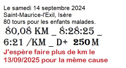 Très content d'avoir échanger des paroles et même des blagues avec Anne et Florent Veyrier (les 2 principaux organisateurs) avec Karl, Renaud, Rachid, Sandrine, Laurence et Jérôme, la famille Lozano et Magg une nouvelle connaissance. Martine et Alain aussi. J'en oublie sûrement, qu'ils me pardonnent ! Mais aussi les coureurs de "mon" club : Footing club Rambertois (26). Environ vingt coureurs/ses sont venus le vendredi soir et le dimanche matin. |