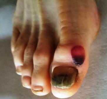 Un petit souvenir que je ramène : cette grosse ampoule. L'ongle noir c'est tout le temps comme ça. Pourtant mes baskets sont grandes et j'avais mis un pansement dessus.