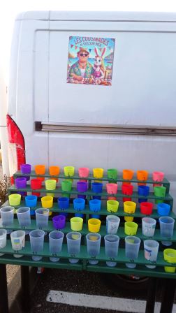 Chaque verre est numéroté : c'est très bien. Bravo pour le ravito de Stéphanie. (même si, comme d'habitude, je n'ai quasi rien mangé sur ces 2 marathons) _ Une pâte de fruit et 2 petits morceaux de banane. |