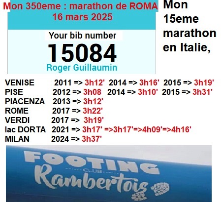 Marathon de ROME 16 mars 2025 = 3h44'47" _ _ _ Mon 290eme en < 3h45'.