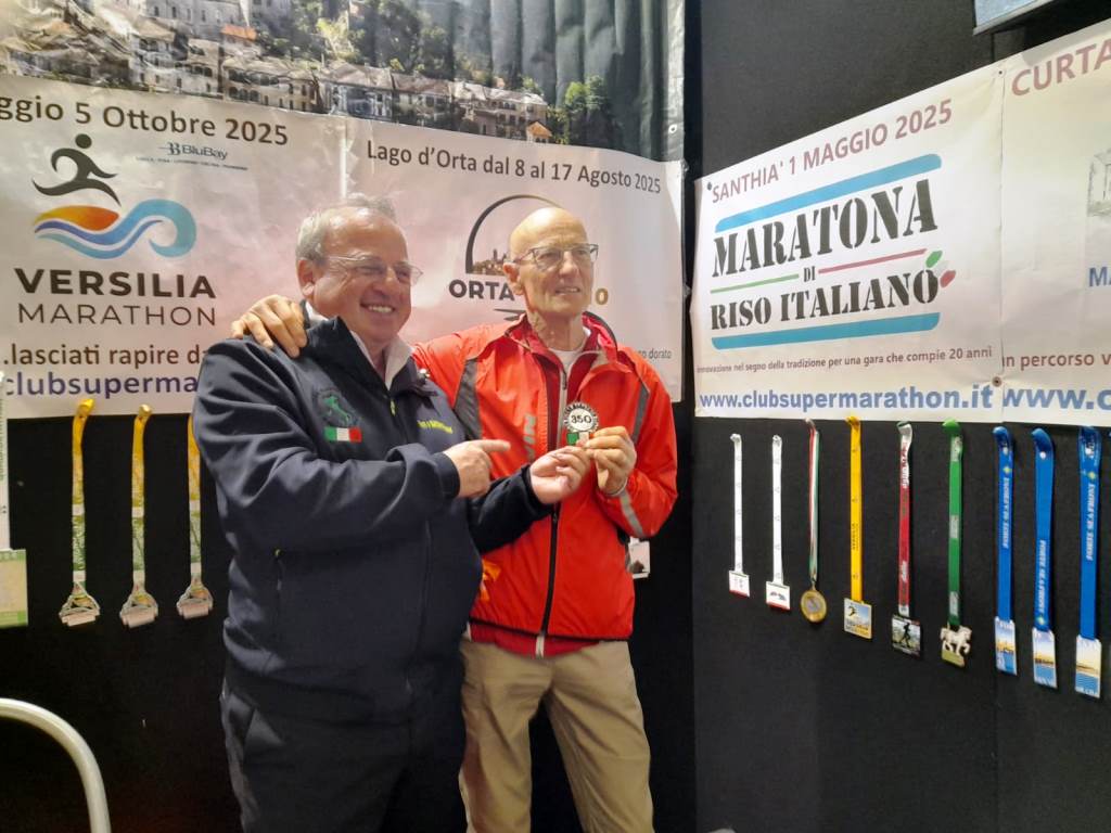 Photo souvenir avec le Président du Club Super Marathona Italia. Grand merci à ce club très dynamique de m'accueillir dans leur rang à l'occasion de mon 350eme. |