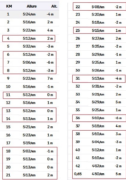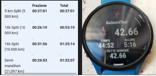1h52'07" au semi* d'après l'organisation... Mais ma montre me dit 1h52'30" au 21,300 soit 13 secondes de moins au 2eme semi ! |