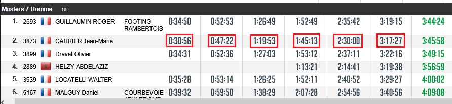 Classement master 7, je remarque que le 2eme est toujours en avance sur moi jusqu'au 40eme km