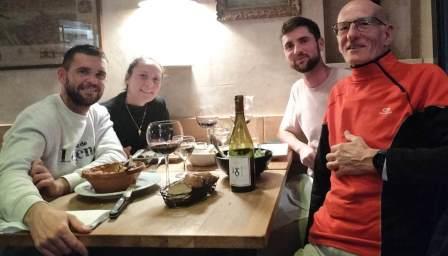Pour finir dimanche soir (après lumière dans la cathédrale) un bon resto où l'on rencontre des jeunes bretons très sympathiques qui ont couru le marathon. On discute, on plaisante, et je leur fais de la pub pour le marathon du Beaujolais ! Au plaisir de vous revoir ! |