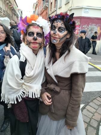 Immense structure à la piste des géants et c'est Hallowen, 2 dames font la fête dans la grande rue de Colombelle. Grand marché de ventes d'artisanat, de vêtements, et bière et vin chaud... Etc. |