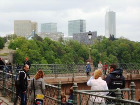 Nous passons la journée du vendredi à découvrir à pied la ville. Il y a la ville basse et la haute et plus loin la ville moderne avec la tour de l'Europe tout à droite sur la photo ci-dessous. Une ville escarpée, construite sur une colline. Les voitures sont "supportables", pas d'affluence importante. Beaucoup de vélos avec pistes cyclables. Mais la pluie nous empêche de tout voir, on ira manger un gâteau à "la brioche dorée" entre 2 magasins. Puis samedi matin on va voir l'immense complexe thermal et touristique d'Amnéville (57) à 40 km de Luxembourg. |